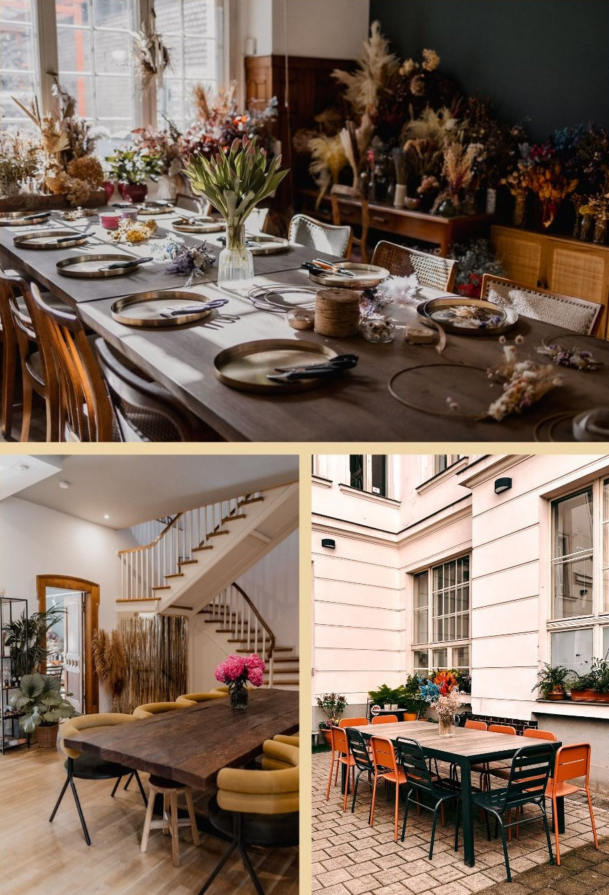Es handelt sich um wunderschön gestaltete Kreativräume mit eigenem Zugang & Toilette. Dazu gibt es natürlich WLAN und eine voll ausgestattete, offene Küche.